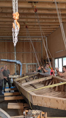 Nach der Rückkehr am Montag wurden die Arbeiten am römischen Reisewagen und dem Prahmboot planmäßig fortgesetzt.