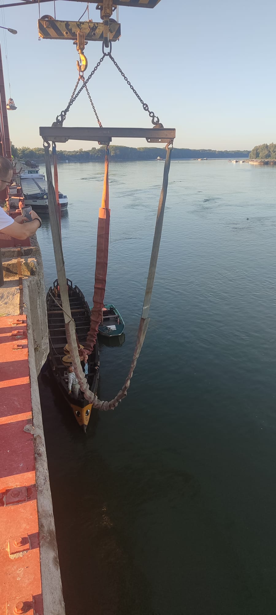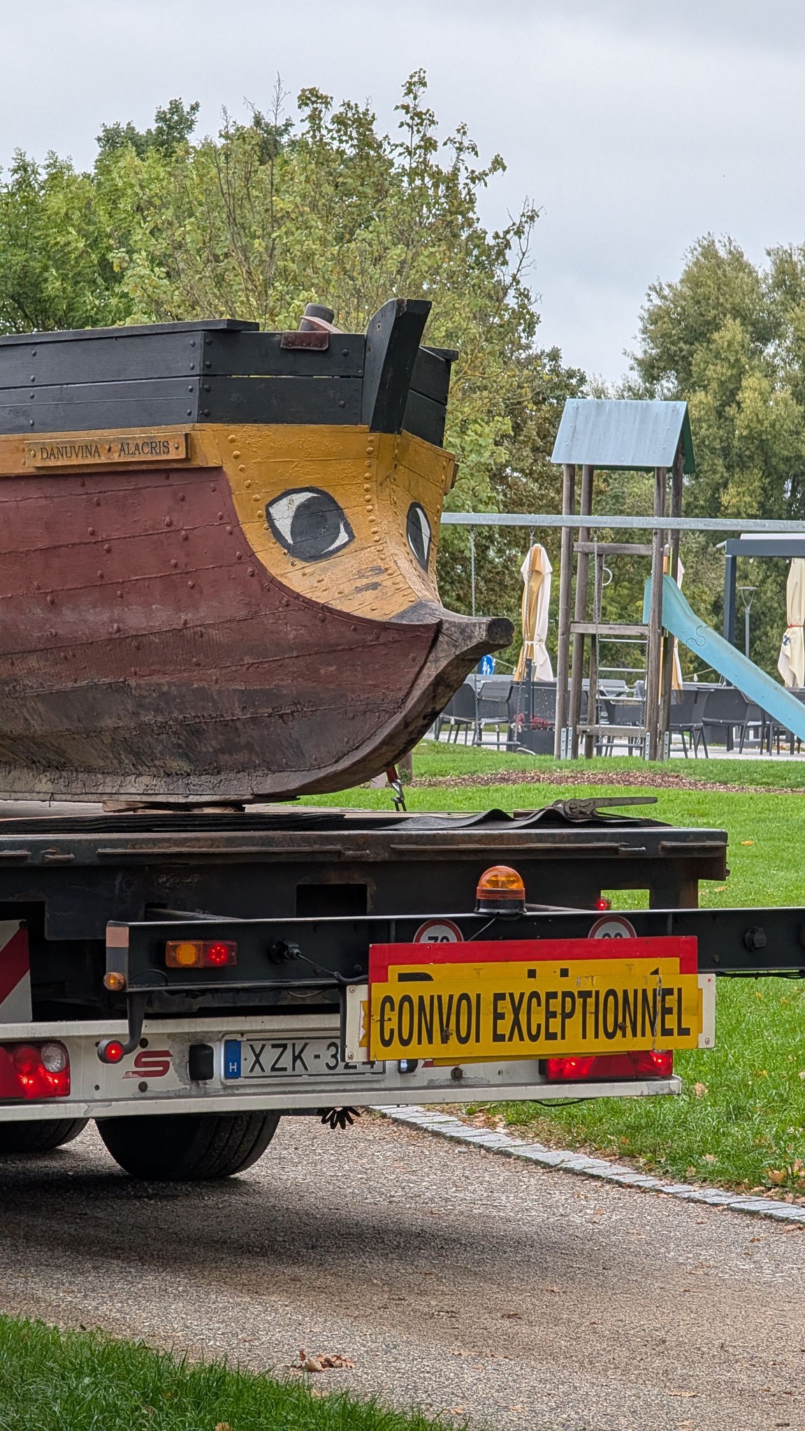 Andere Engagements werfen ihren Schatten voraus. Fest engagiert ist unser Keltenwagen beim Keltenfest am Sonntag und muss dafür vorbereitet werden. Die mit uns kooperierende Melanchthonschüler helfen uns aber bei den letzten Arbeiten, sowohl am Segel der Alchmona rediviva, als auch am Boot selbst (Baumarken entfernen) und am Laufboden des Prahmbootes. Aber auch der Kastenwagen des römischen Reisegefährts wird fortgesetzt. Zuletzt wurde die Fahrt nach Ungarn vorbereitet, damit am Sonntag der Hafen in Südungarn, Baja, angefahren weden konnrw. Am Montag wurde die Danuvina aus der Donau gehoben und traf auf einem ungarischen Schwerlaster die 1000 km Rückreise an und konnte am Dienstag gegen 11 Uhr in Schlungenhof / Gunzenhausen am FAU-Römerzentrum beim Altmühlsee eintreffen.