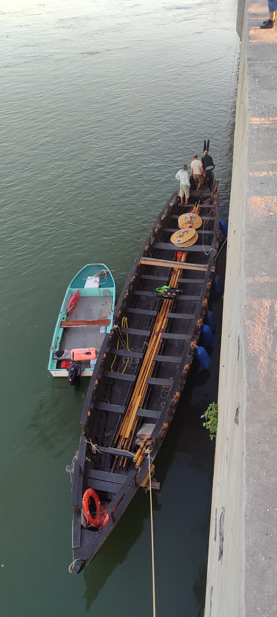 Das Team der Professur für Alte Geschichte brach gestern (25.05.25) nach Bratislava (Slowakei) auf, um heute (26.05.25) in der Früh ab 6:00 Uhr – bei Wind und Wetter – der Danuvina Alacris eine Auffrischung der enkaustischen Bemalung zu verleihen. Die Schwierigkeit dabei: Das römische Patrouillenboot befindet sich während dieser Arbeit IM WASSER der Donau, sodass die Putz- und Malerarbeiten von einem zweiten Boot aus durchgeführt werden müssen. Den erschwerten Bedingungen zum Trotz können sich die bisherigen Resultate (Foto rechte Seite) des Teams mehr als nur sehen lassen. Nach der Halbzeit der Nachsorgephase des EU-Interreg DTP Projektes LDL, in welcher die Danuvina als schwimmendes Museum nacheinander allen Projektpartner zur Verfügung steht, kann sie dann bis Ende 2027 in neuem Glanz Donau abwärts weiterreisen.